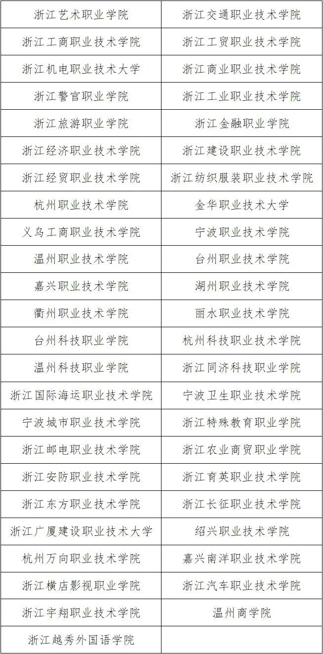 浙江省高职提前招生试点高校名单